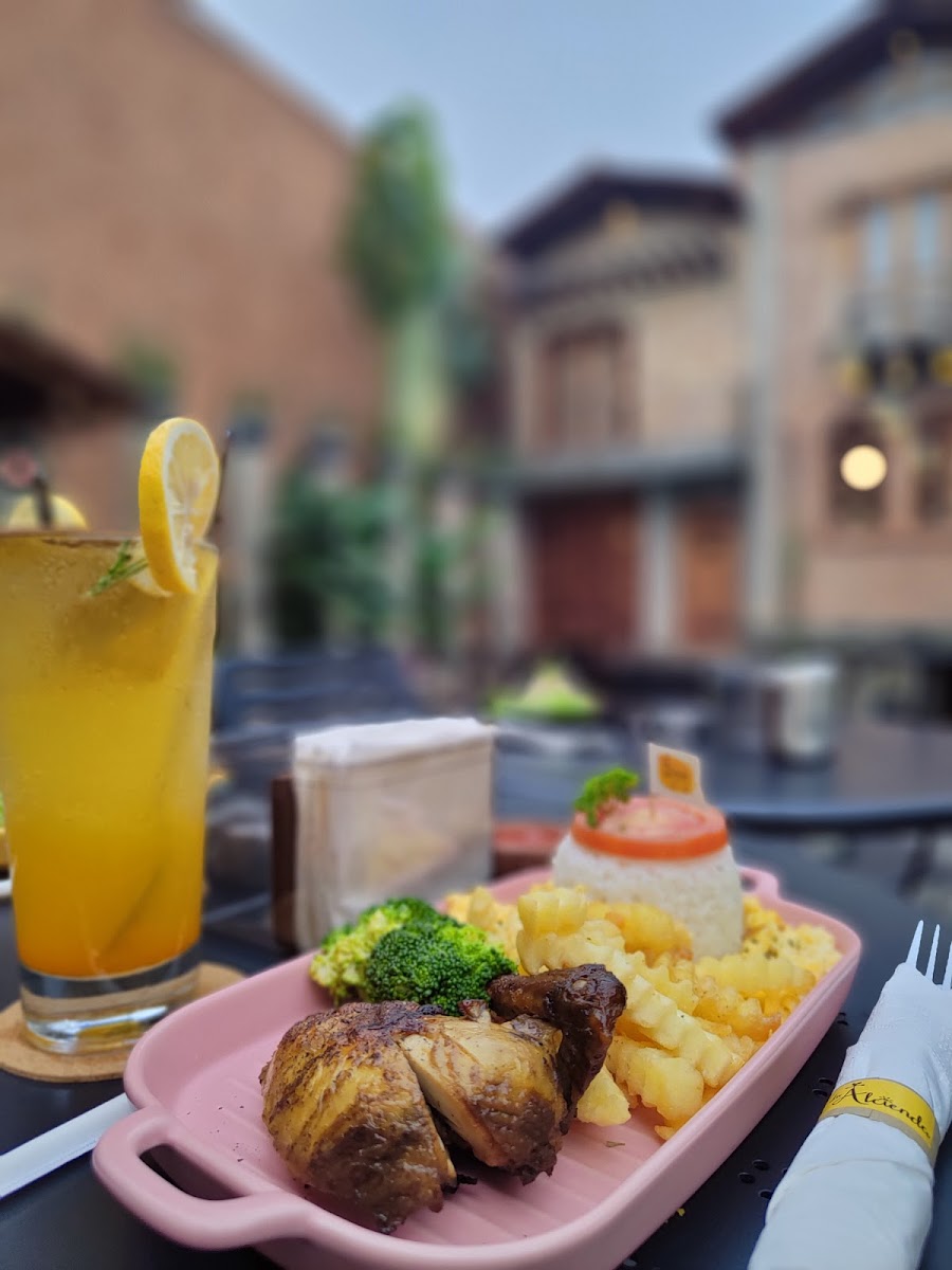 The place is Instagrammable, opens at 4 PM. There's an entrance fee of 135,000 IDR per person. The food options are mostly Western. We order wedang uwuh heritage, fragrante limon ice tea, cafe con azukar de palma, piel de papa dos, nachos carne picada, nasi goreng buntut sapi, pollo parilla con arroz, spaghetti aglio olio and mineral water equil..spending Rp 817 thousand for all... Worth a try