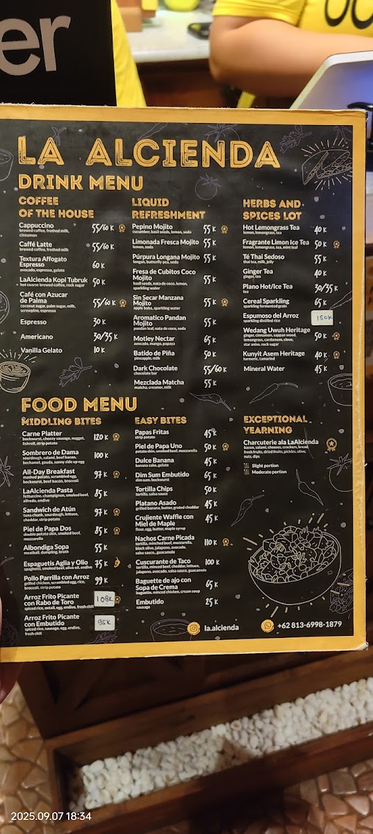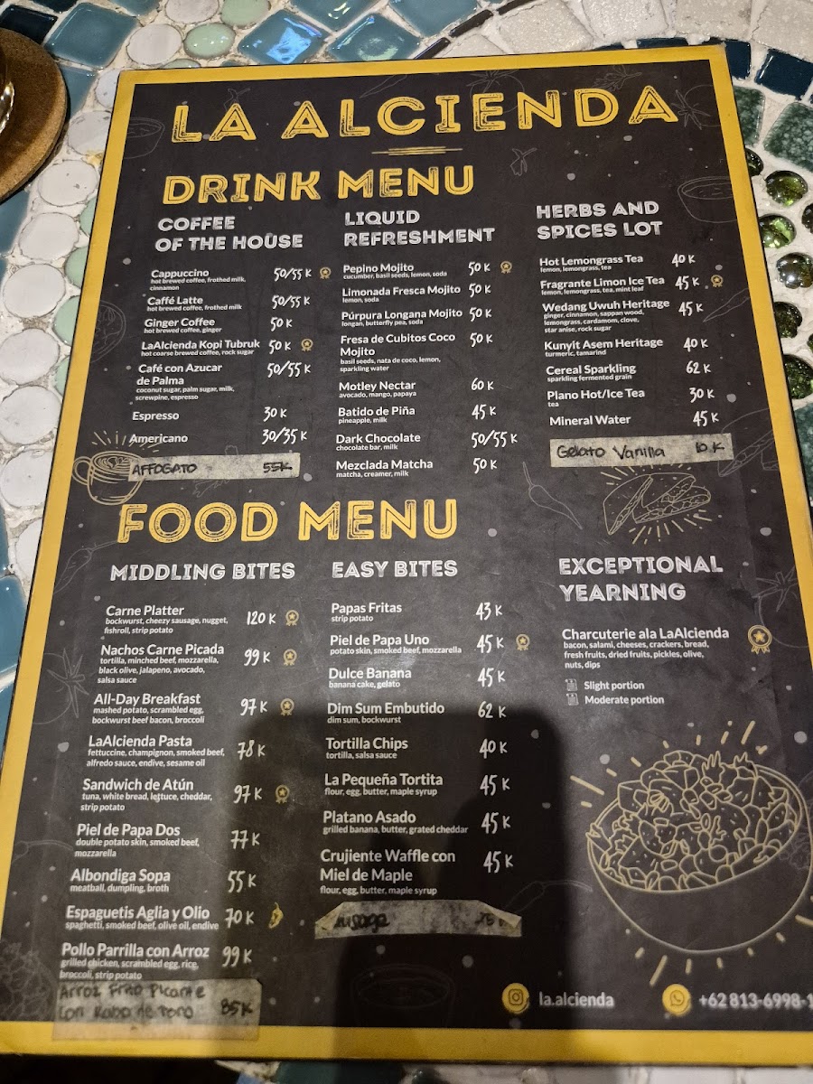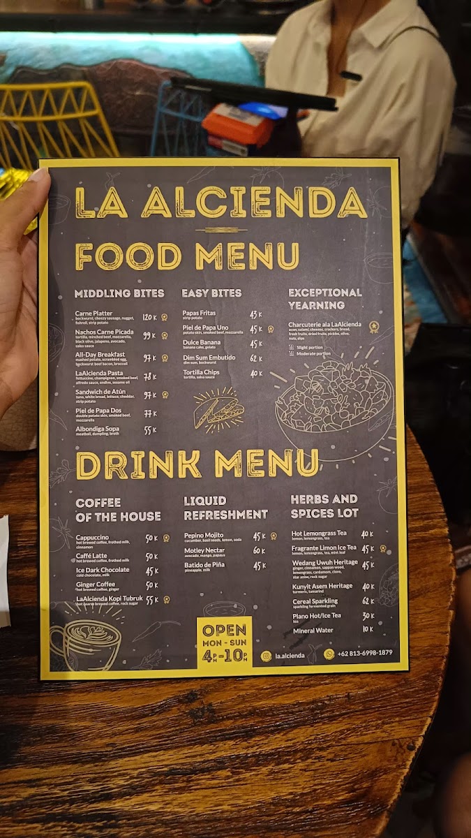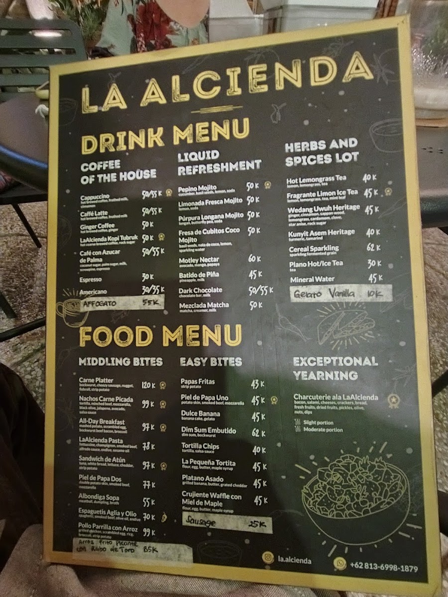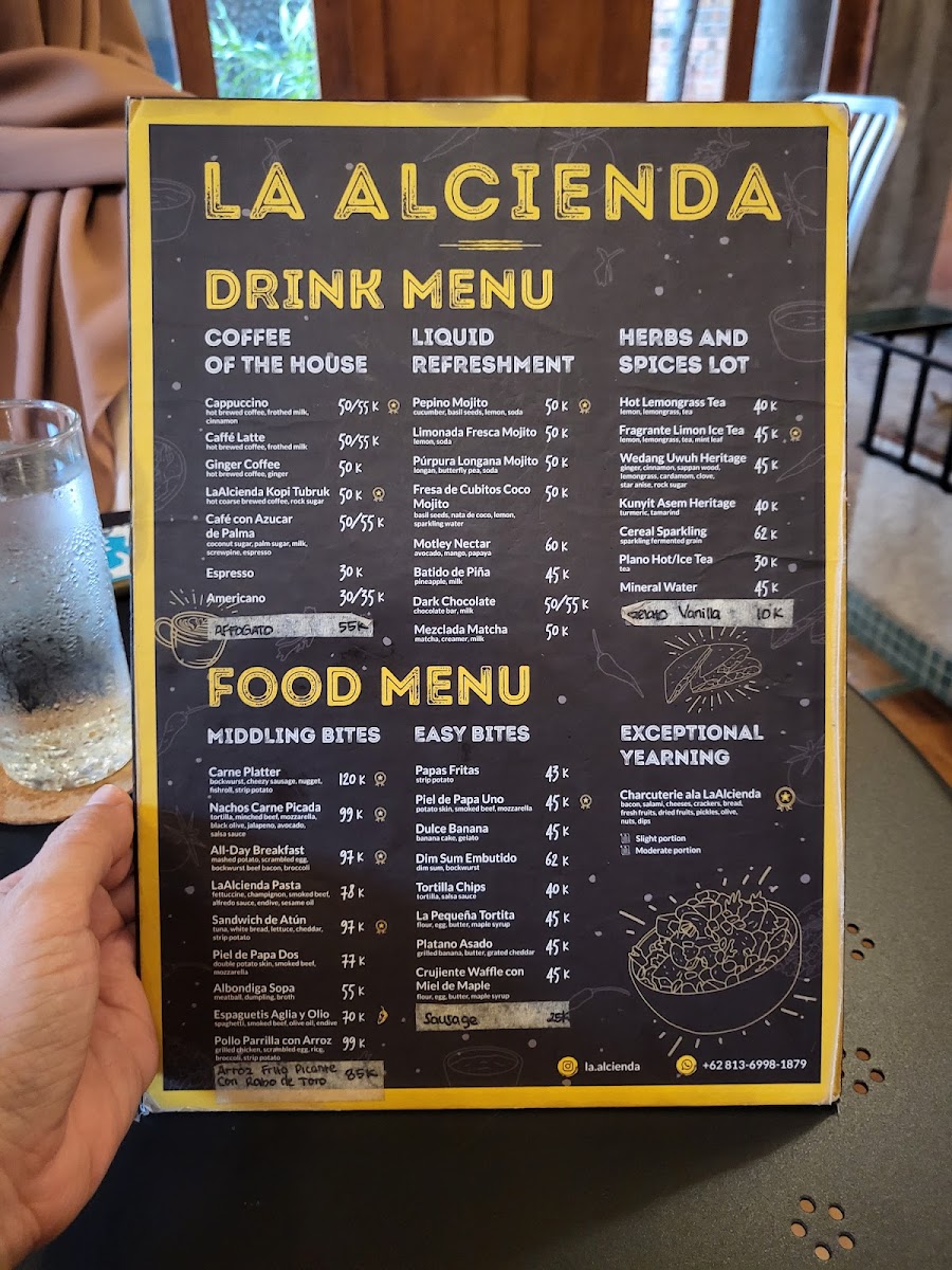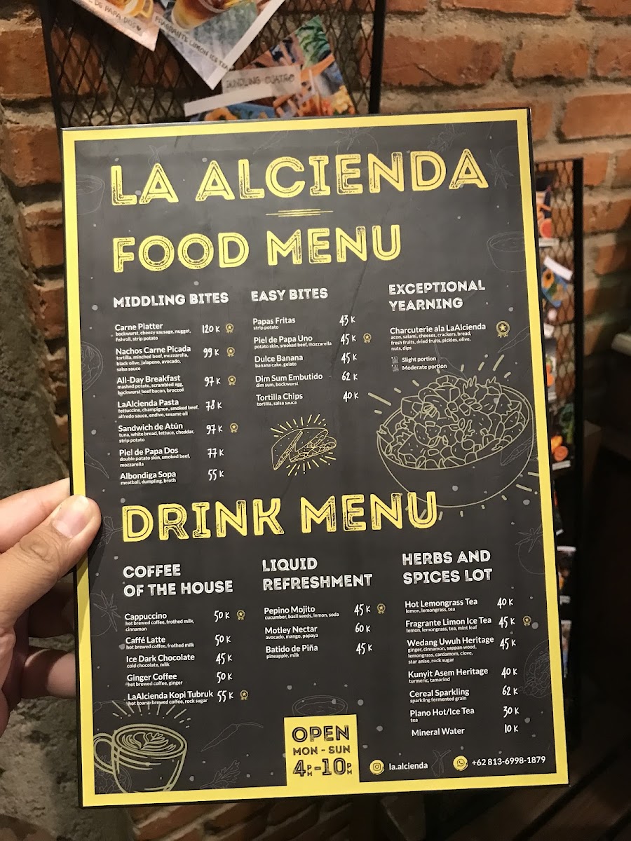 Guests often enjoy light bites and hearty plates here, from freshly made pasta like their signature La Alcienda Pasta and creamy Pasta Carbonara to warm, flavorful dishes such as Ayam Panggang. The drink options provide a soothing balance, with refreshing choices like Lemongrass Tea alongside sweet treats such as the Dulce Banana, perfect for a relaxing afternoon or a cozy evening.